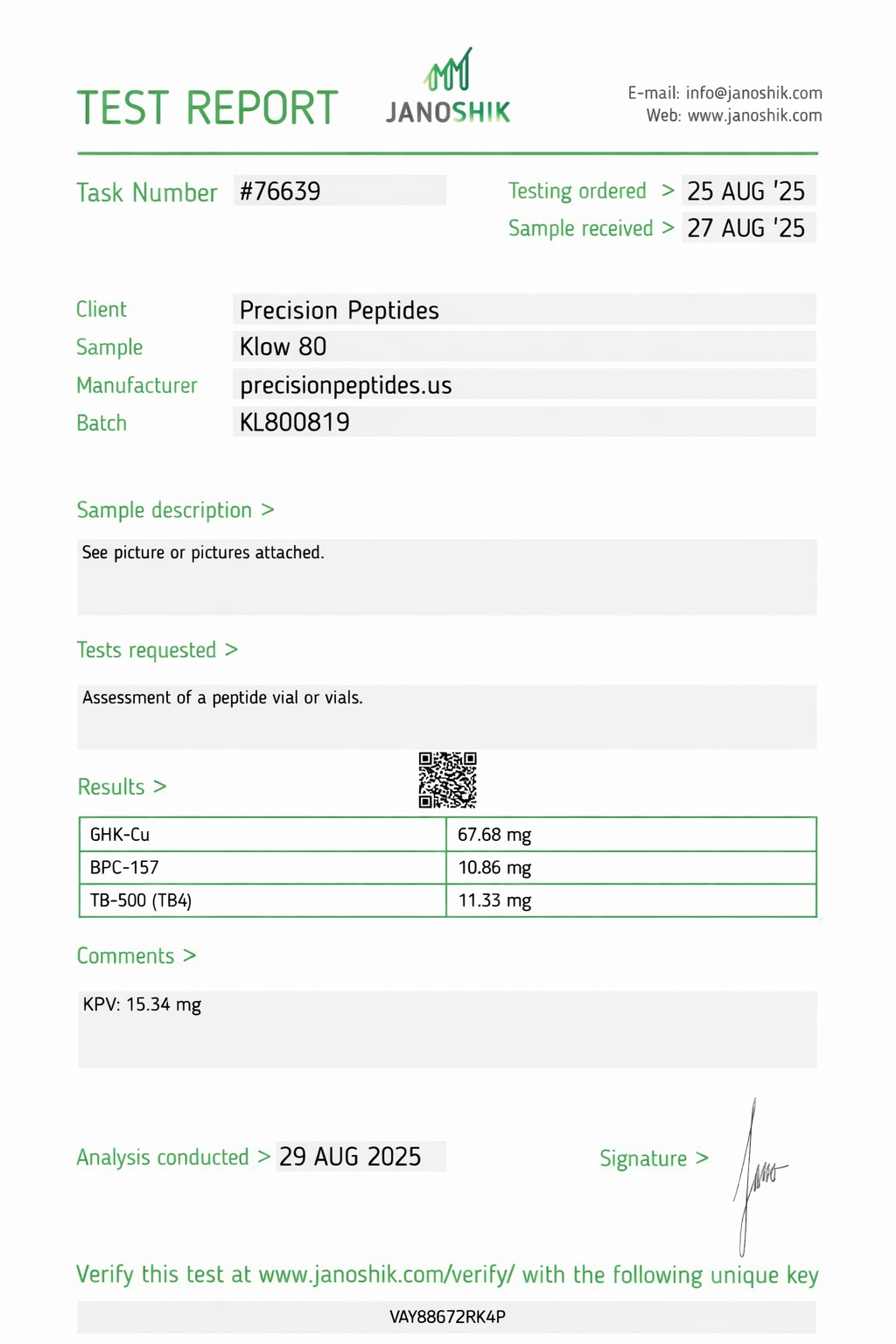 Each vial of Klow blend peptide includes:
